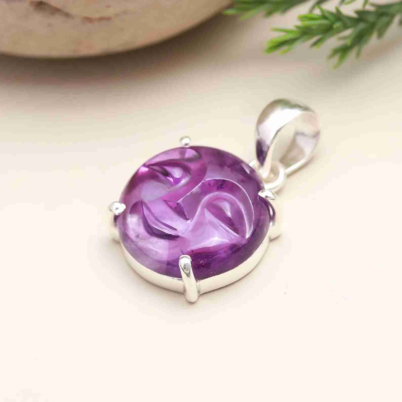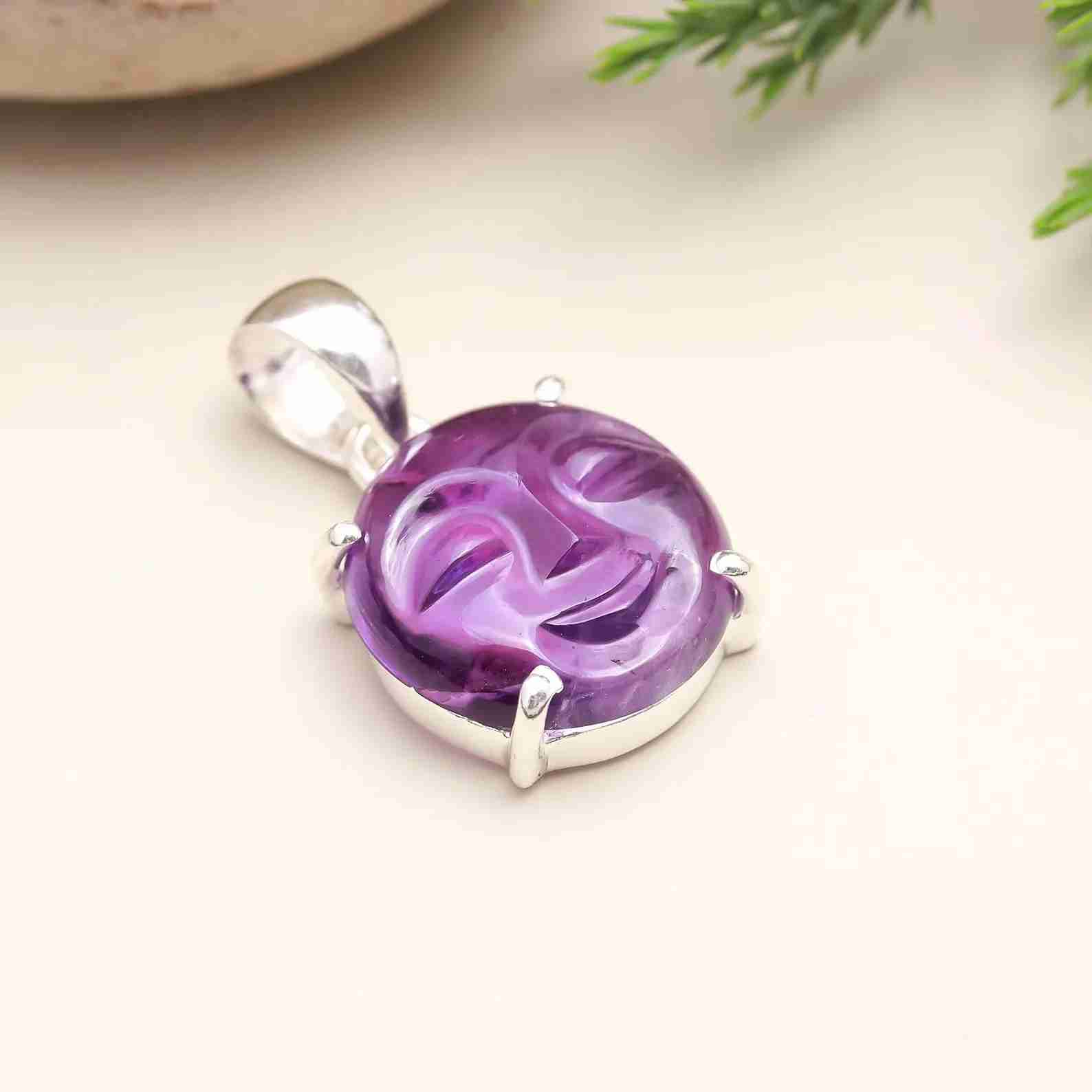 Discover tranquility and spiritual depth with the Amethyst Moonface Pendant, a hand-carved piece that unites the gentle power of the moon with the healing energy of amethyst. The moonface represents serenity, emotional balance, and divine intuition, while amethyst promotes clarity, protection, and spiritual growth.